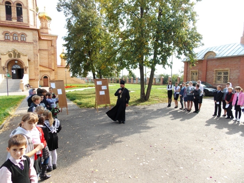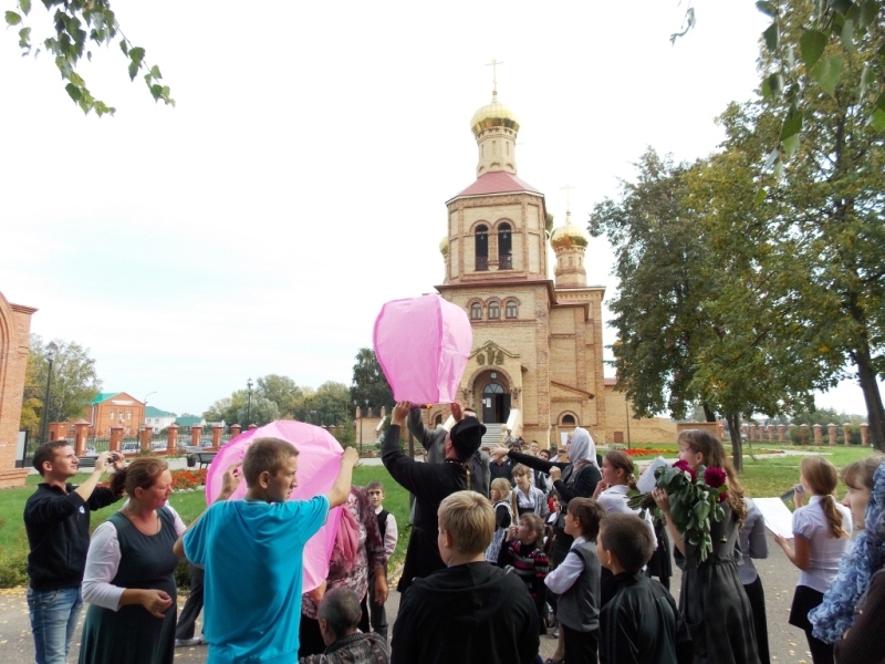 Вот и наступил тот долгожданный момент, когда ребята со своими преподавателями опять будут постигать основы православной веры в стенах Воскресной Школы. 16 сентября, после Божественной Литургии, перед храмом Воскресения Христова прошла торжественная линейка перед началом нового учебного года в Воскресной Школе. Всем собравшимся были сказаны добрые слова, напутствующие на целенаправленность в деле просвещения в вере Христовой. С душеполезными наставлениями к учащим и учащимся обратились настоятель прихода прот. Павел Чурашов и заведующая Воскресной Школой Надежда Александровна Тарасова. Также все приветствовали и были рады тем ребятам, которые пришли в Воскресную Школу в первый раз. Новобранцы сделали круг почёта перед собравшимися, после чего им подарили памятные подарки. Линейка закончилась запуском в небо фонарей, символизирующих наше стремление, веру, надежду и любовь к Богу.